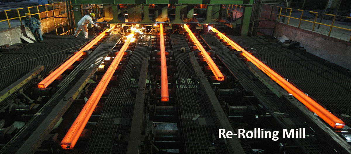 Natural gas fired re-heating furnace is equipped with motor driven mechanical pusher where Steel Bars are heated in rolling temperature (1100-1200C). The re-heating furnace has standard capacity of 10MT/hr.
